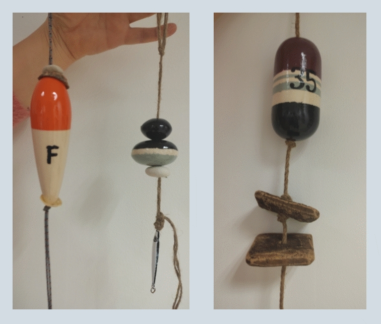 "Ambiance maritime" avec flotteurs, animaux marins, Baigneuse, vases poissons...